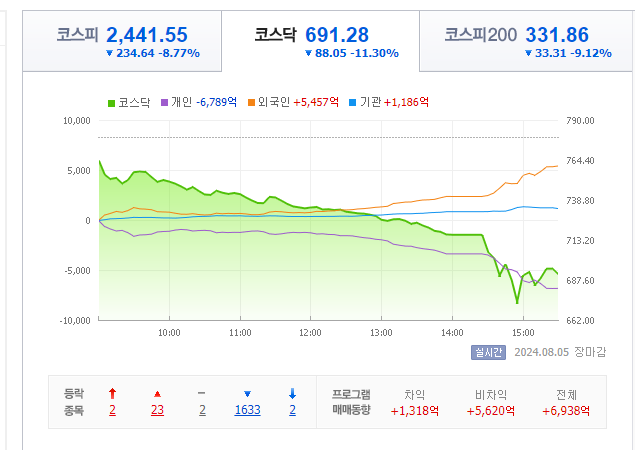 시장은 난장판이었다. 일본 니케이가 -13%, 코스닥이과 나스닥이 -9~10%대 빠지는 등 중국을 제외한 일본과 한국이 작살났다. 엔화도 강세를 보이면서 이 기저에 산업-테마공부/1.경제/매크로/6.외환/캐리트레이드/캐리트레이드]가 있는게 아닌가 하는 의심을 키웠다