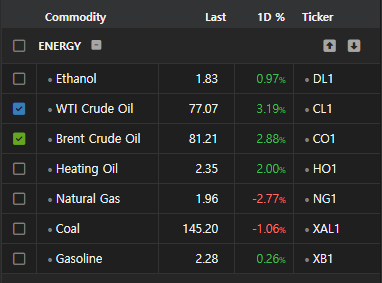 브렌트는 80불(+2.88%), wti는 77(+3.19%)불을 넘어버림