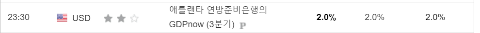 - 애틀란타연방은행GDP의 3분기 gdp 예상치는 2.0%로 동일. 발표 전 특별한 지표 발표가 없던 영향으로 변동 없이 발표됨