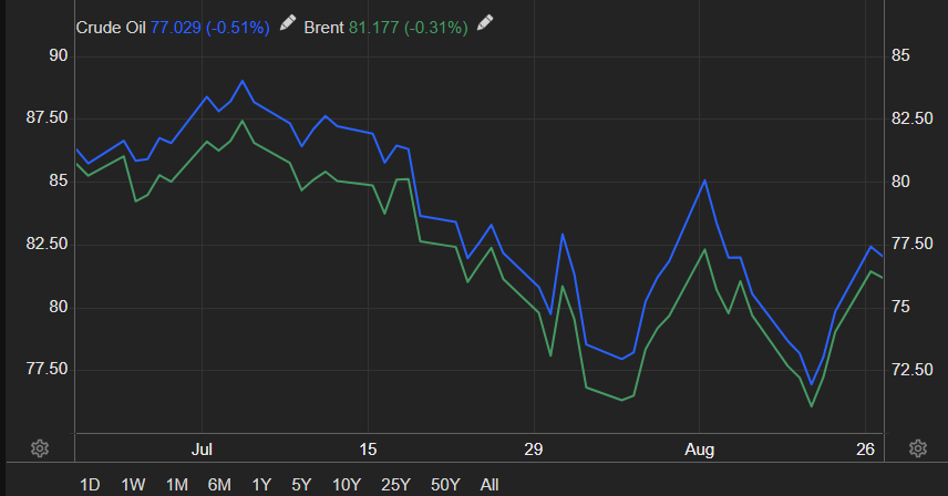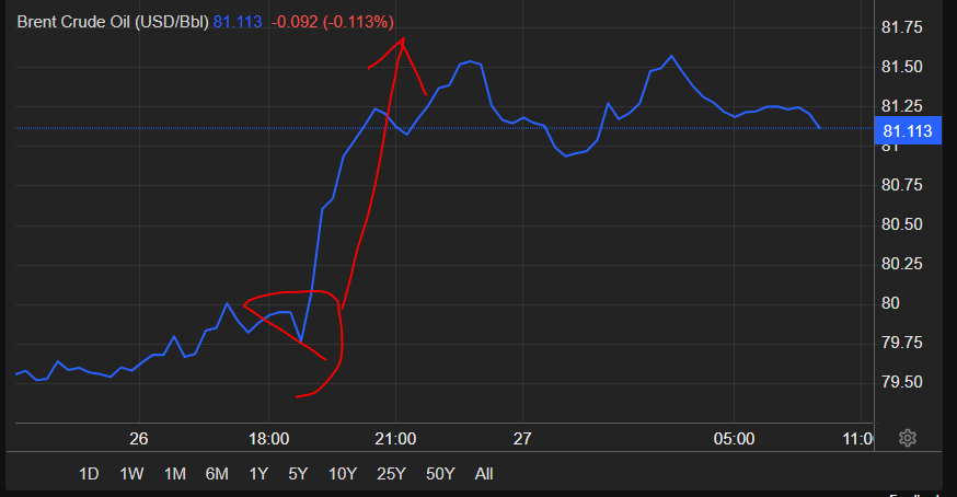 브렌트는 80불(+2.88%), wti는 77(+3.19%)불을 넘어버림