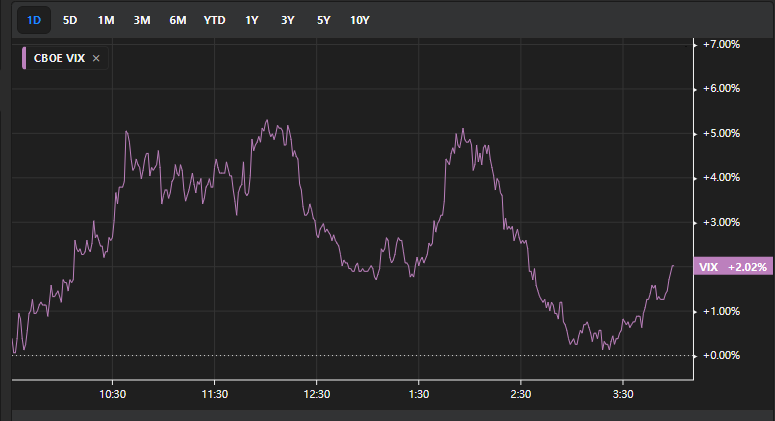 장 초반 5%로 치솟던 vix는 장 후반부로 갈수록 하락해 2%대로 마감