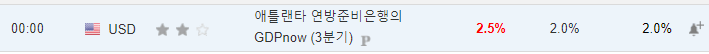 - 애틀란타연방은행GDP 애틀란타 연방은행의 GDP NOW의 경우 PCE의 양호한 소비 데이터를 반영해 기존 2%에서 2.5%로 3분기 GDP 전망을 상향함