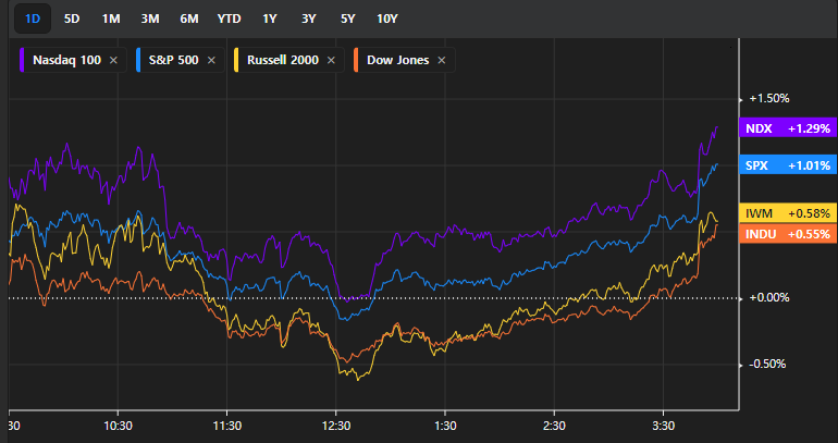- 엔비디아(NVDA, +1.5%)는 실적 발표 후 저가 매수세 유입되며 상승