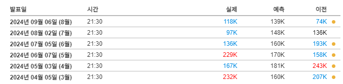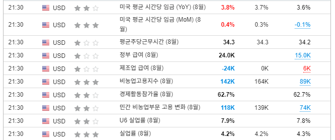 - 비농업고용지수 🇺🇸 8월 논팜 컨센 하회. 단, 실업률은 부합. 임금은 컨센 상회(노동시장 둔화는 맞는데 심각하진 않았다. 다만, 채권시장 2년물은 50bp 산정하며 지표 발표 후 발작)