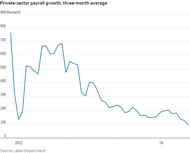 민간 부분 고용, 3개월 평균 96,000건. 지난 달 14.6만건도, 12.6만으로 하향 조정.