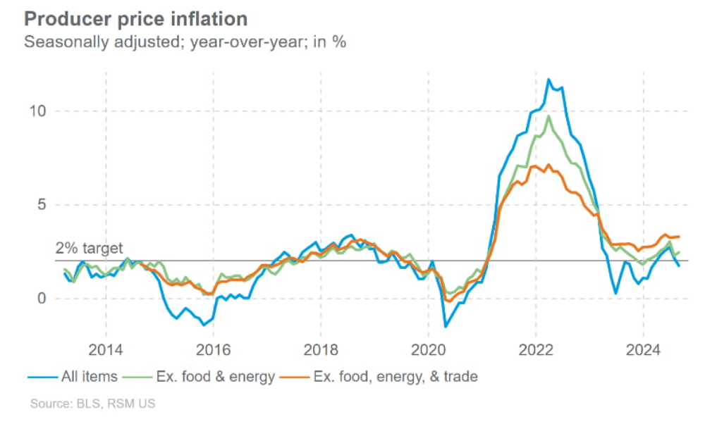 헤드라인이나 근원 PPI는 모두 전월 대비로는 상회. 에너지 가격 하락으로 상품물가는 안정되었으나(0%), 서비스 부문이 상승(0.4%)한 영향. 호텔 비용이 4.8% 급등한게 가장 큰 문제였는데 이는 전일 CPI와 유사한 부분.전반적으로 아직도 인플레이션이 끈적하단 느낌을 주며 25bp 인하 재료로 사용됨. 지표 발표 후 주식시장은 급격히 붕괴되진 않았지만 반도체 등을 중심으로 약세를 보였고, 채권 금리는 급락 후 다시 반등하며 큰 변동성을 보이지 않았음