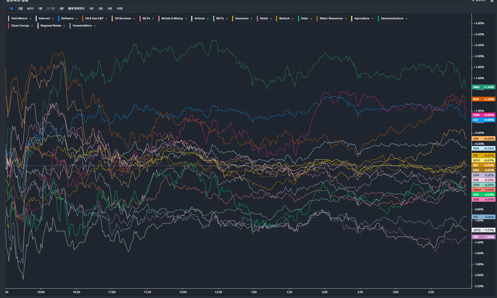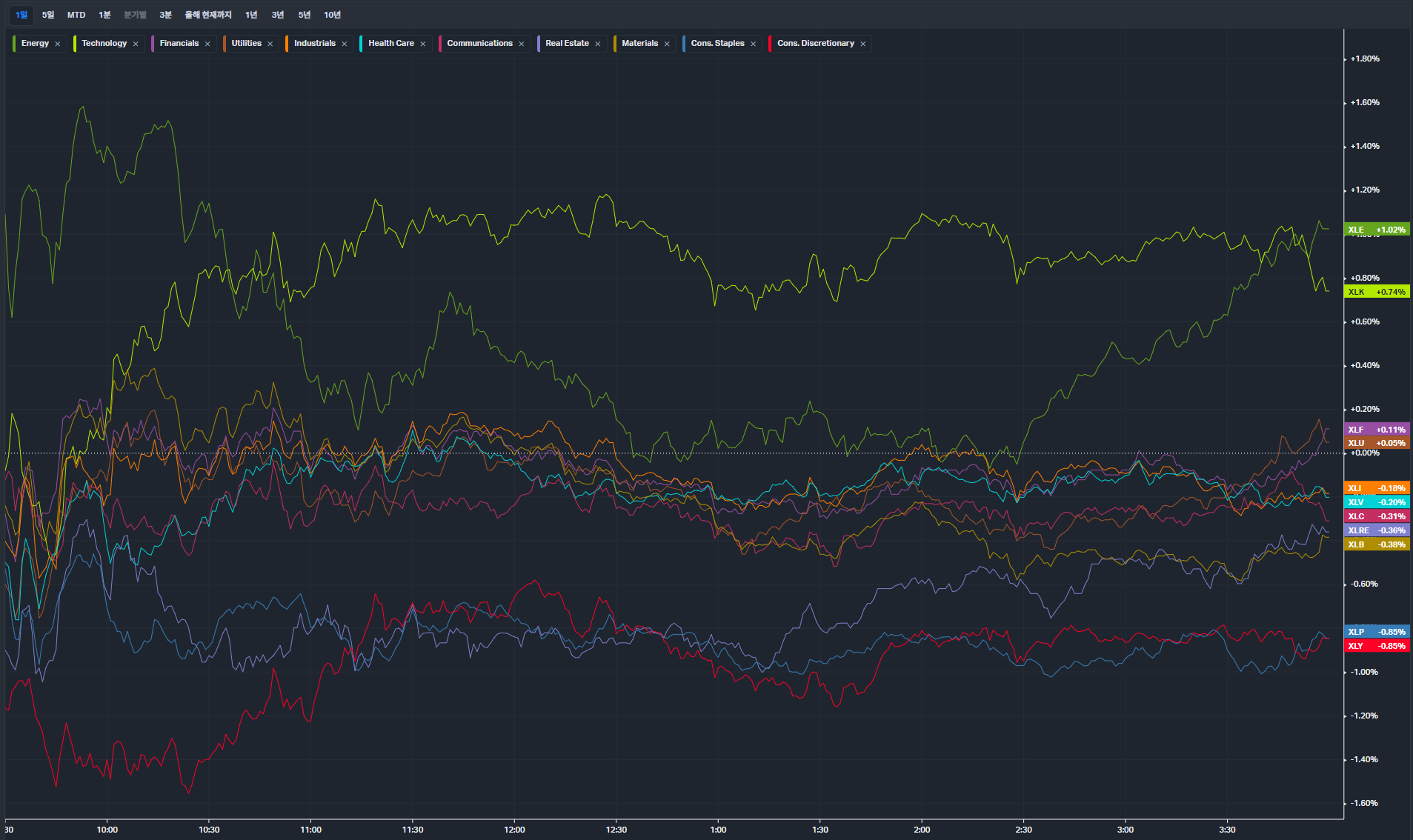 세부적으로 보면 [반도체 > 에너지 > 클린에너지]순으로 강세를 보여 최근 하락했던 종목으로 매수가 유입됨을 다시 한 번 더 확인 할 수 있었음