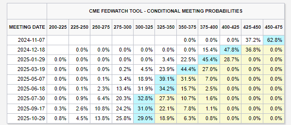 fed watch를 보면 11월 25bp 인하 확률이 62%로 과반 이상을 유지함