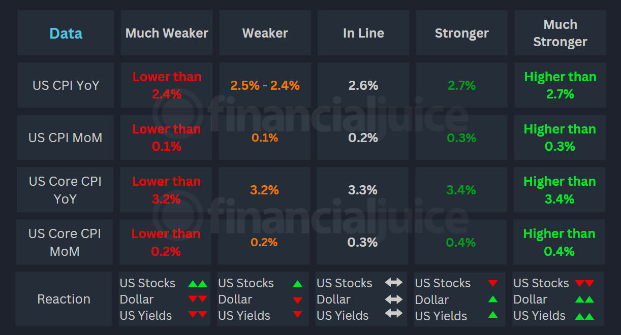 - 전월비 % 실제 0.3 / 예상 0.3 / 전월 0.3 ■ Headline 0.24% (est. 0.27%) ■ Core 0.28% (est. 0.34%)