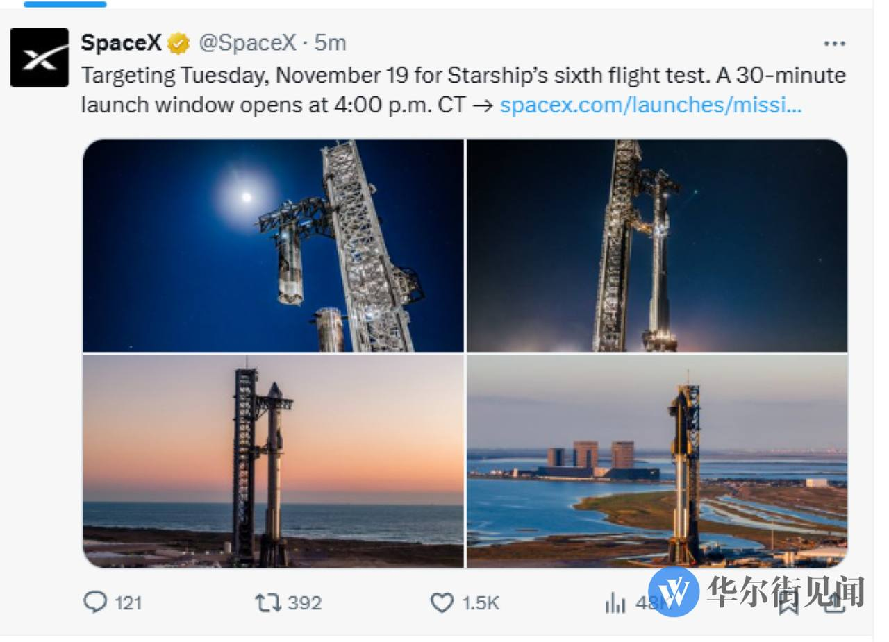 - ★ 11/19. SPACE X 스타쉽 발사 6차 테스트(오전7시)