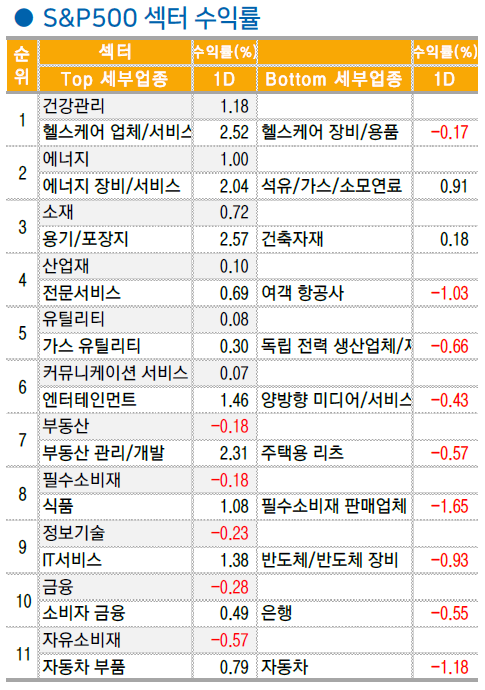 금일 어닝쇼크 발표 후 급락한 타켓(TGT -21.4%)과 실망감 우위였던 5 개년 전망 발표 후 급락한 퀄컴(QCOM-6.3%) 등이 관련 섹터 부진으로 이어졌으며 마이크로소프트(MSFT -0.6%), 알파벳(GOOGL -1.2%), 아마존(AMZN -0.8%) 등 M7 과 반도체 업종(SOX,-0.7%)도 엔비디아 실적발표 경계하며 부진.