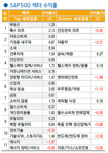 - 메이시스(M -2.2%)는 실적 공시 연기로 주가 하락. 연기 원인은 회계 직원의 의도적 오류 기재 발견