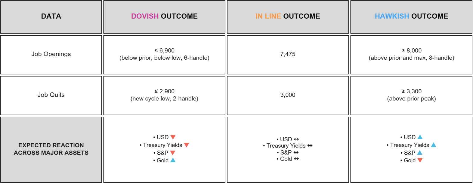 미국 노동부 JOLTs, 10 월 JOLTs 구인건수는 774.4 만건으로 컨센(751 만건) 상회. 전월(737.2 만)대비로도 상승. 구인 비율도 4.6%로 전월(4.5%)비 개선되는 모습.세부적으론 전문 비즈니스, 레저 등이 증가했으며 제조업, 무역 등은 감소. 자발적 퇴직과 이직률은 전월대비 상승하는 모습인 반면 해고는 160 만건으로 전월비 감소 10월 JOLTS 보고서는 [경기 우려를 크게 자극하지 않았음]. 구인건수는 시장 예상보다 큰 폭으로 증가했고, 해고율 (Laysoffs and discharges)은 전월 대비 소폭 하락
