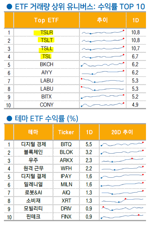 스텔로직(SATL +24.8%), 로켓랩(RKLB +3.2%), 데스티니 테크100(DXYZ +30.4%), 의 경우 테슬라(TSLA)의 상승에 영향을 받은 것으로 보임. 트럼프 당선 직전부터 [트럼프 당선 = 우주 모멘텀 강화] 논리로 상승해온 우주 관련 종목들은 특히 테슬라의 상승에 연동하는 모습을 보여주고 있음. 특히 데스티니 테크100의 경우 사실상 SPACE X 테마주에 가깝기 때문에 [테슬라 상승 = 우주 모멘텀 강화 = SPACE X 상장 기대 = 우주 관련주 상승] 요딴 로직으로 움직이는 듯 보임