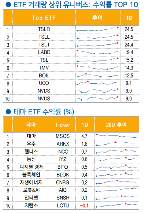 엔비디아 : NVDA -2.3%, 미국 정부의 중국에 대한 AI칩 수출 제한 가능성 및 브로드컴의 성장이 잠재 위협으로 인식되며 하락