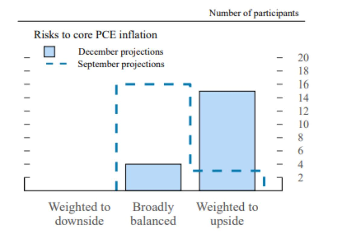 근원 PCE 물가에 대한 위험이 균형잡혀 있다에서 상방으로 기울었다고 판단한 위원수가 9월 대비 급증