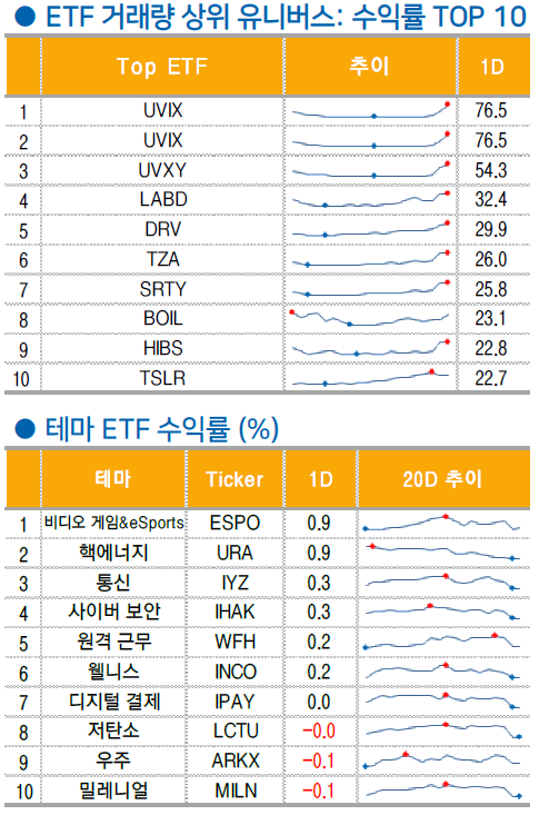 미 증시는 DOW +0.04%, S&P 500 -0.09%, NASDAQ -0.10%, Russell 2000 -0.45%로 혼조세. 전일 급락에 따른 기술적 반등으로 상승 출발한 미 증시.