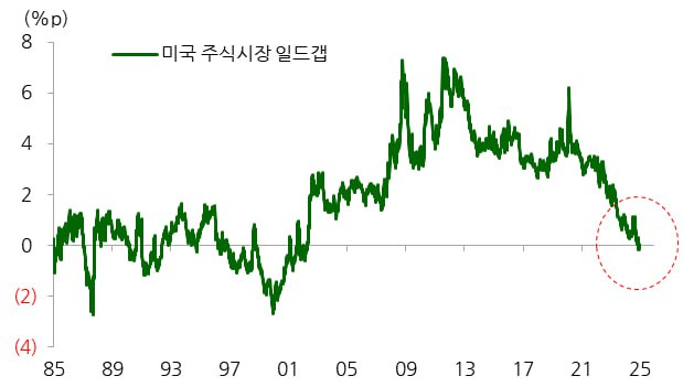일드갭, 미국은 채권금리가 주식 기대수익률보다 더 높다는 뜻