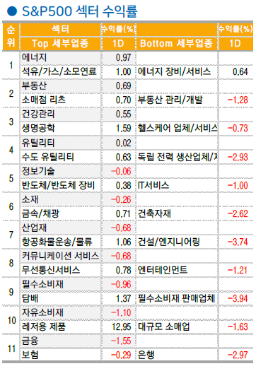 JP모건(JPM -4.46%), BOA(BAC -1.54%), 씨티그룹(C -3.10%)등 금융주는 물론, 모건스탠리(MS -4.51%), 골드만삭스(GS -3.87%)등 금융주 대부분이 하락. 미국 경기에 대한 불안을 감안 향후 실적에 대한 불안 심리가 매물 출회 요인으로 작용.