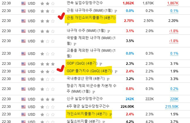 산업-테마공부/1.경제/매크로/1.경기/미국GDP/미국GDP, 미국 4분기 GDP 연간 증가율 2.3% Q/Q; 추정치 +2.3%