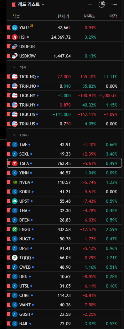전반적인 투심이 안 좋은 가운데 발표된 첼린저 감원은. 17만개라는 엄청난 수치임에도 최근 이어진 연방정부의 감원이라고 인식한 듯 발표 후에는 특별한 영향을 주진 못하는 모습. 더 크게 빠진다던가, 반등한다던가 하는 모습이 없음▶ 목요일에 미국 선물은 하락했으며, S&P 500과 Nasdaq 100 선물은 약 1% 하락했고 Dow Jones는 300포인트 이상 하락했습니다.