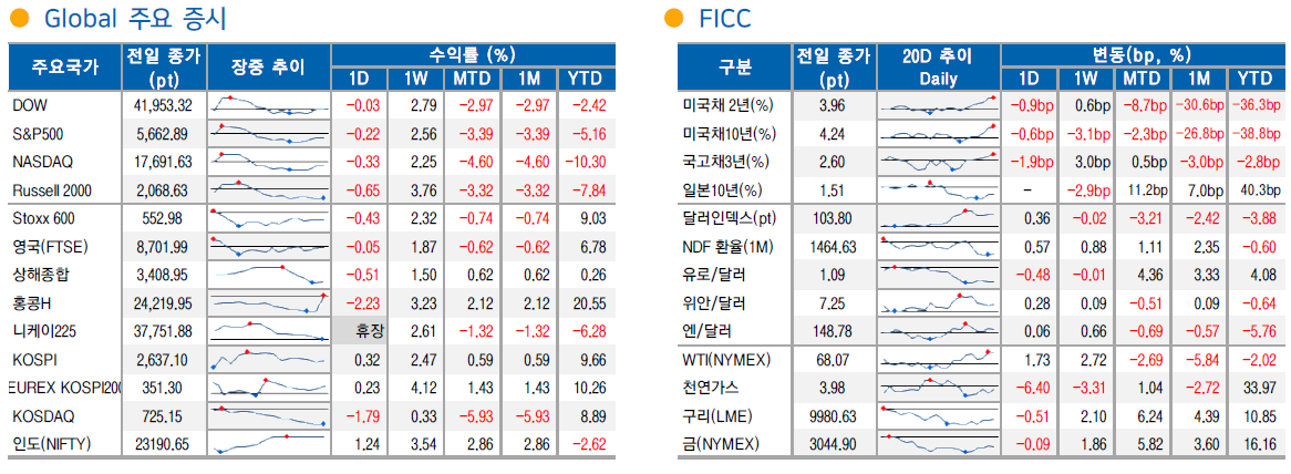 미 국채금리는 2Y 3.96%(-0.9bp), 10Y 4.24%(-0.6bp)로 하락. 도비시한 FOMC 로 전일의 하락세 연장.