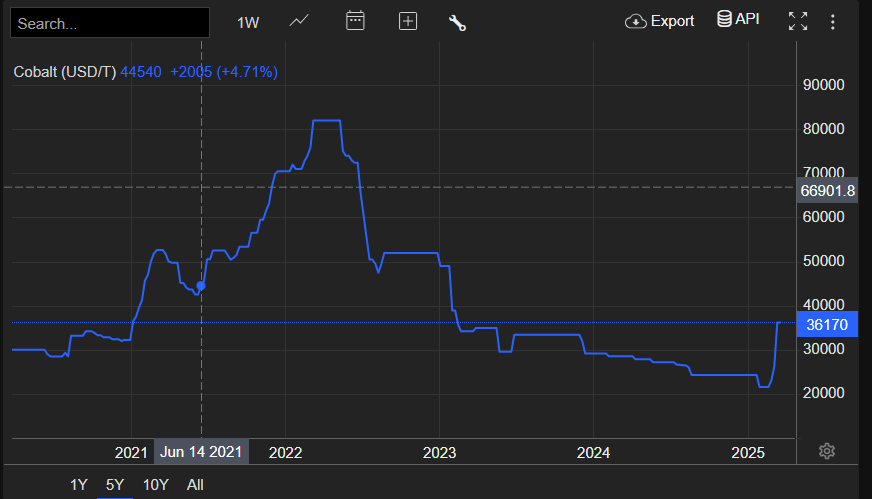 코발트, 콩고는 글로벌 코발트 공급을 억제하기 위해 2위 생산국인 인도네시아에 협력을 요청할 방침이다. 최대 생산국인 콩고가 2월부터 수출을 금지했음에도 인도네시아에서(총 공급량의 11%) 공급이 이어진다면 가격이 효과적으로 통제되지 않을 수 있기 때문이다. 콩고 정부는 인도네시아와의 협력이나 1년 이상의 선적 제한, 수출 할당량 설정 등 가격 통제를 위한 여러가지 방안을 고심 중인 것으로 보이며 아직까지 구체적인 정책 방향은 공개되지 않았다