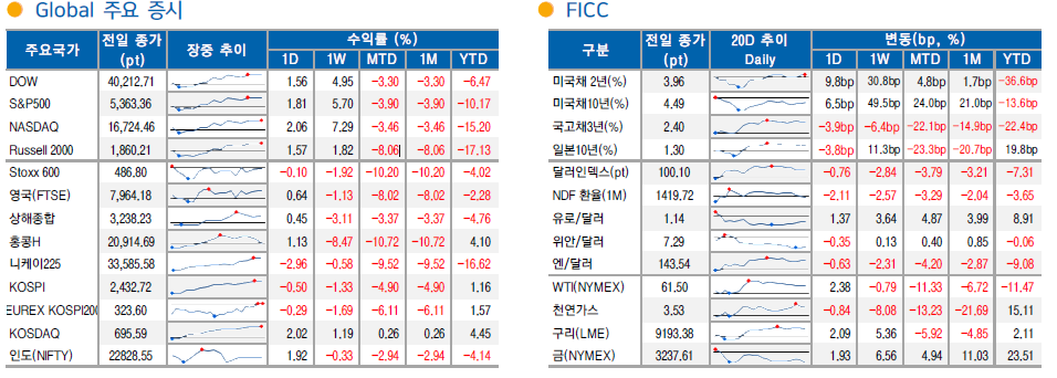 장 초반 관세 측면에서도 중국의 추가 관세 보복이(84%→125%) 부각 이후 양국이 추가 관세 부과에 대한 가능성을 일축한 것이 조명. 더해 백악관에서도 재무부 차원에서 리스크를 관리할 것이며 중국과 의 협상도 낙관적이라 발언하며 증시는 반등.