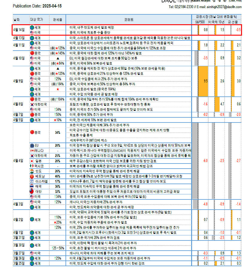 여기에 [캐나다 총리의 보복 관세 유예] 발표와 전일 베센트의 발언에 국채 금리가 하향 안정을 보인 점도 긍정적.