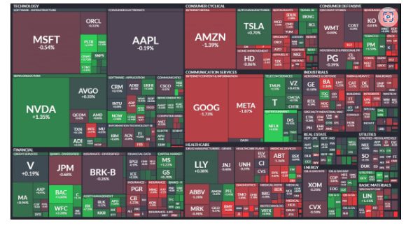 애플(AAPL -0.19%)은 관세 면제로 상승했지만 단기적이라는 점을 반영하며 매물 출회되자 하락. 다만, AI 강화를 위한 데이터 분석을 시작했다는 소식과 관세 부과 이전 인도에서 사상 최대 규모인 20억 달러 규모의 아이폰을 공수했다는 소식 등에 하락은 제한. 아마존(AMZN -1.39%)는 AWS 사업 즉 클라우드 사업에서 구글의 제미나이 활용한 클라우드 부문에 잠식당하고 있다는 소식과 관세를 이유로 목표주가 하향 조정 소식 등에 하락. 알파벳(GOOGL -1.73%)은 일본 공정거래 위원회에서 반경쟁적 관행에 대한 중단 및 중지 명령을 발표하자 하락. 메타 플랫폼(META -1.87%)은 반독점 조사 소식과 함께 주커버그가 EU의 메타 광고 수익을 위협하자 트럼프에게 더 공격적인 대응을 촉구한 점도 부담. MS(MSFT -0.54%)는 벌칸 밸류 파트너스의 지분 확대 소식 등에도 관세 우려로 하락