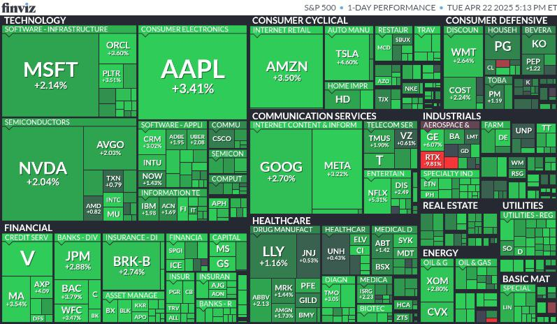 [개장 후]04/23 미 증시, 반발 매수와 미-중 관세 협상 기대에 애플, 아마존 중심으로 상승