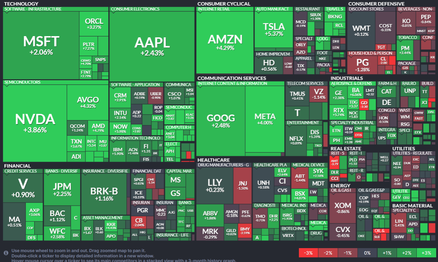 (다우 +1.07%, 나스닥 +2.50%, S&P500 +1.67%, 러셀2000 +1.53%, 필라델피다 반도체 지수 +3.96%)