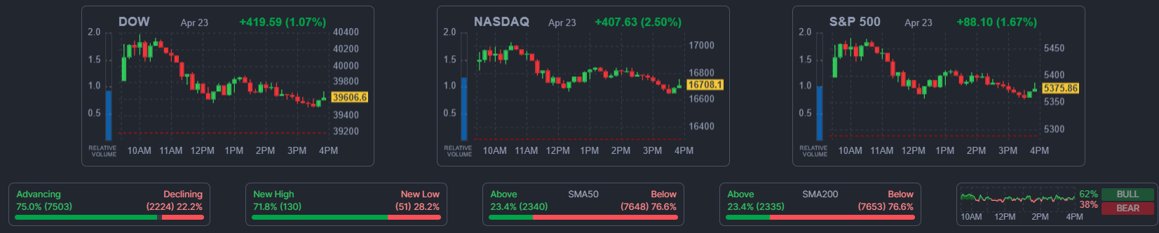 [개장 후] 04/24 미 증시, 트럼프로 상승했지만, 베센트 발언으로 상승 일부 반납