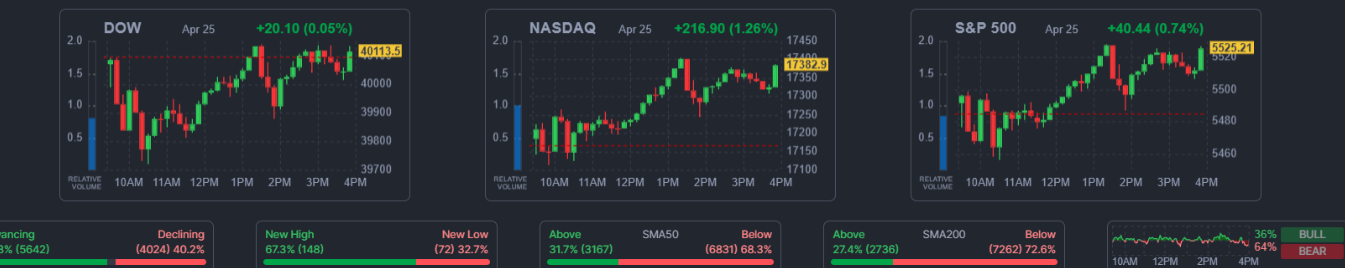 [개장 후] 04/28 미 증시, 경기 불안 속 트럼프 발언 내용에 따라 변화 확대 후 상승 마감