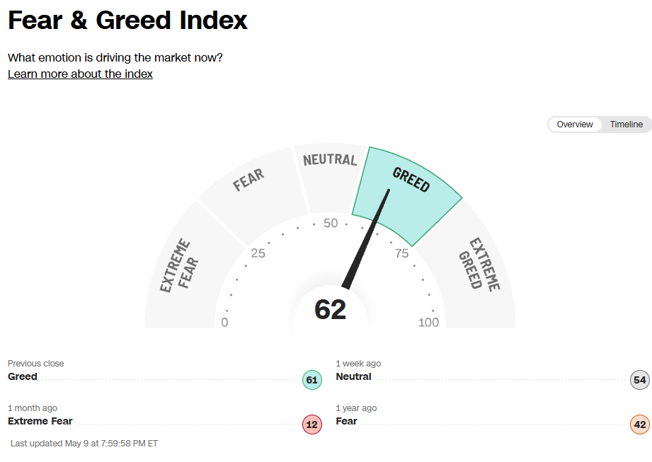 11 개 섹터 중 에너지(+1.0%), 부동산(+0.6%), 경기소비재(+0.6%) 등 7 개 섹터 상승 마감에 성공. M7 업종을 비롯 대부분의 대형주 들이 관망세 유지하며 제한적 등락 유지한 가운데 테슬라(+4.7%)는 전일 급등에 이어 랠리 지속하는 모습. 영국과의 공식적인 무역협상 등 전환된 무역 정책 기조에 따른 기대감 몰리는 모습. CNN 공포탐욕지수도 62pt 로 탐욕 구간에 위치. [4/23 극도의 공포 구간 탈 출 이후 회복세 지속]