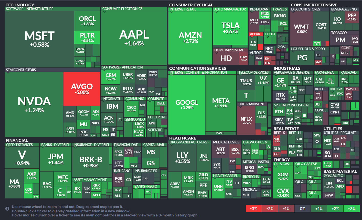 브로드컴(AVGO -5.00%)은 예상을 상회한 실적 발표에도 시장의 기대치를 충족하지 못했다는 분석에 하락. 마이크론(MU +2.14%)은 세계 최초의 감마 노드 기반 저전력 메모리 출시와 일부 투자회사들의 목표주가 상향 조정 소식에 강세.