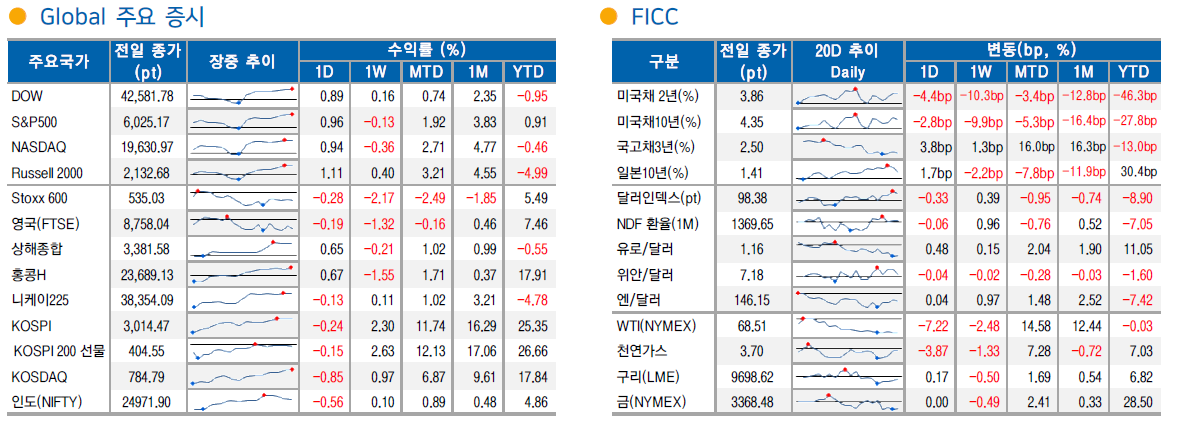 對중국 반도체 규제 강화 우려와 고평가 부담으로 상승폭 제한.슈퍼마이크로(SMCI -9.77%): 20억 달러 전환사채 발행 계획 발표로 급락.