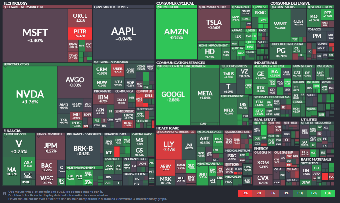 전자상거래 거대 기업 아마존이 2.85% 상승했습니다. Wells Fargo의 목표가 상향 조정과 클라우드 사업(AWS) 성장 기대감이 긍정적으로 평가되었습니다. AI 투자 확대 소식도 상승 요인으로 작용했습니다.