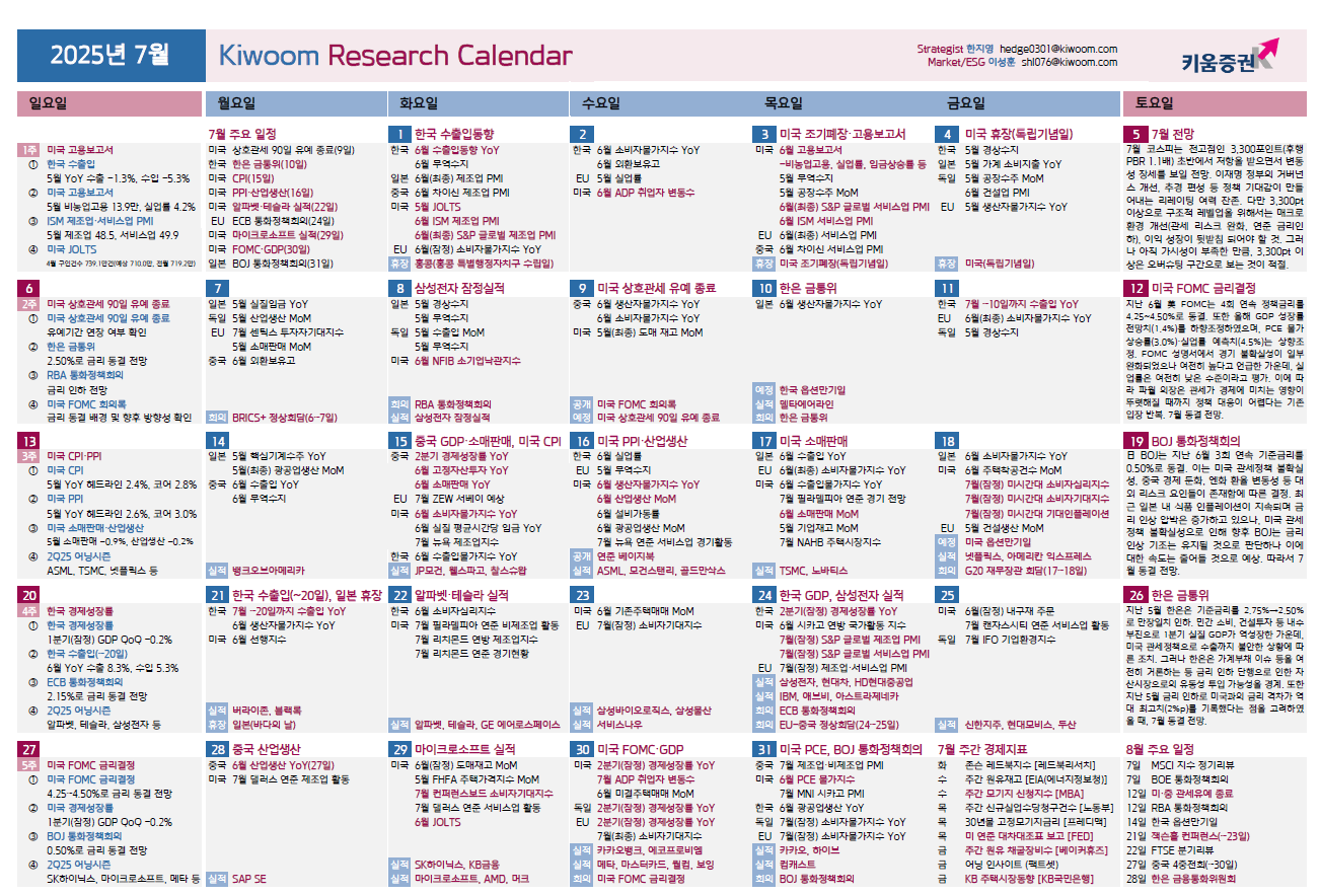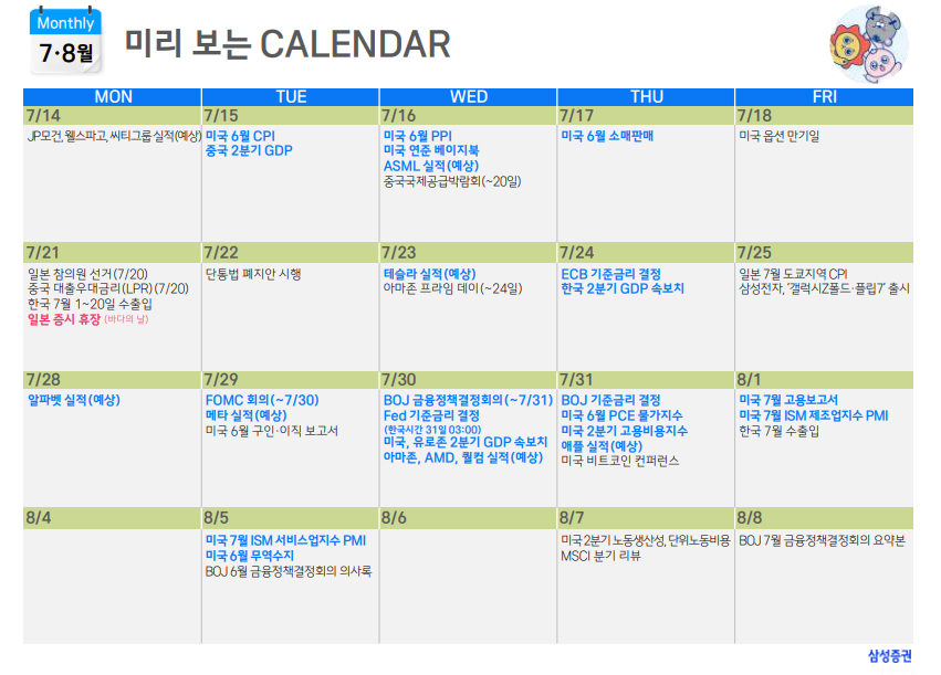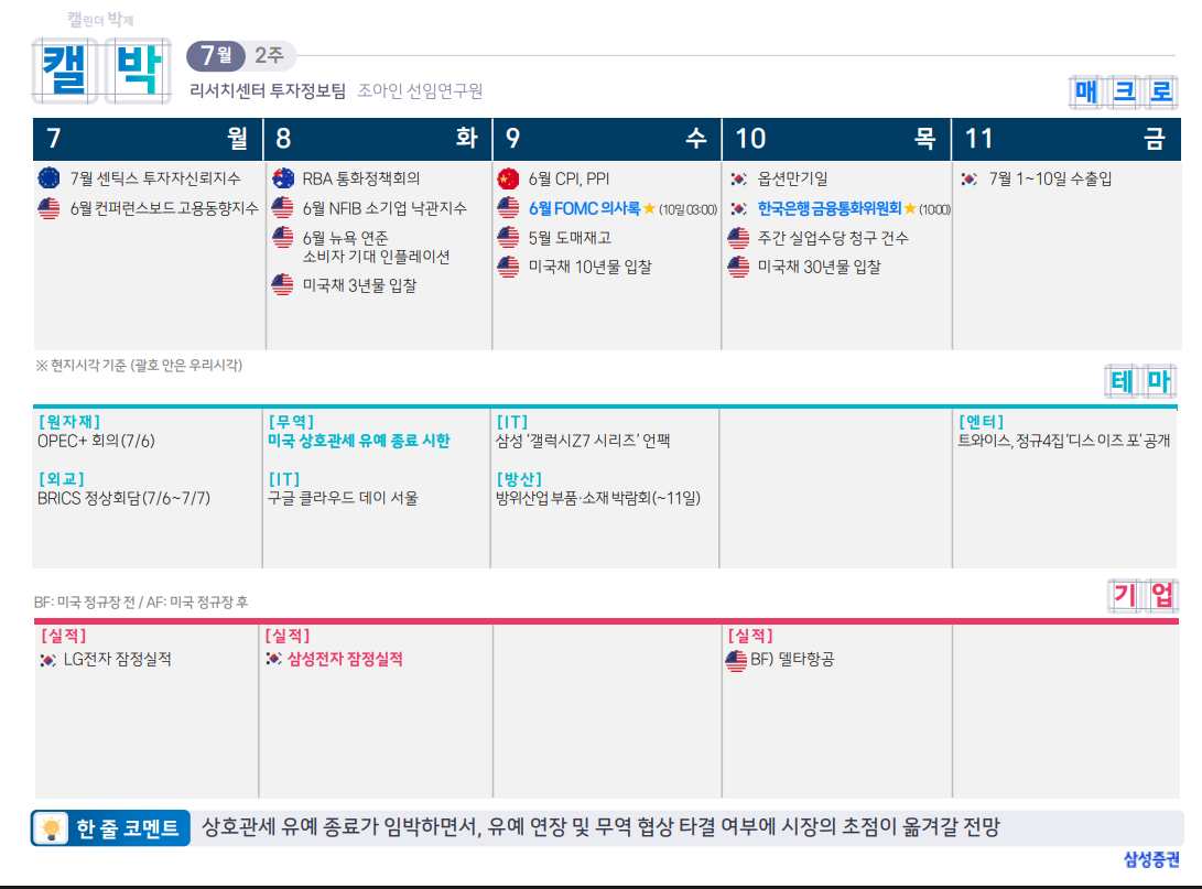 다음주(7월 주차) 주요 일정