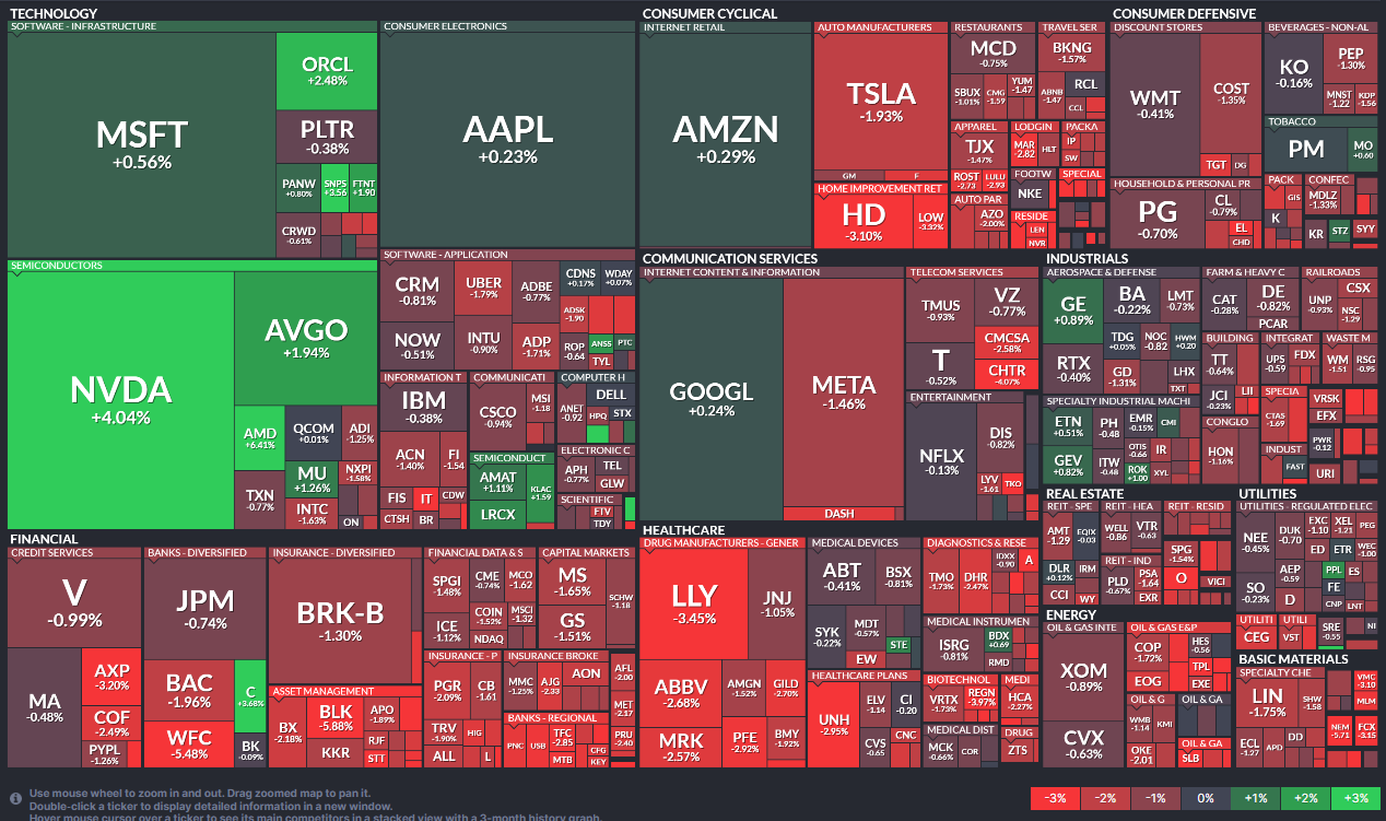 💻 기술 섹터 (+0.8%) 기술 섹터는 엔비디아 중국 칩 소식으로 반도체 중심 상승세를 보였습니다. 특히 AI 관련 기업들이 강세를 보이며 나스닥 신고가 달성에 기여했습니다. 다만 메타버스 관련 주식들은 상대적으로 부진했습니다.