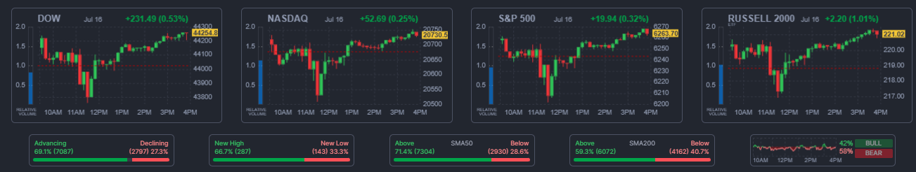 다우존스 산업평균지수: 44,254.78 (+231.49p, +0.53%)