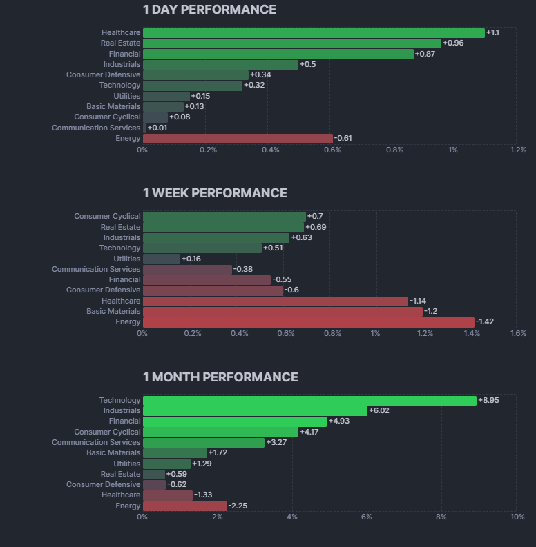 바이오테크 기업들의 회복세로 헬스케어 섹터가 상승했습니다.