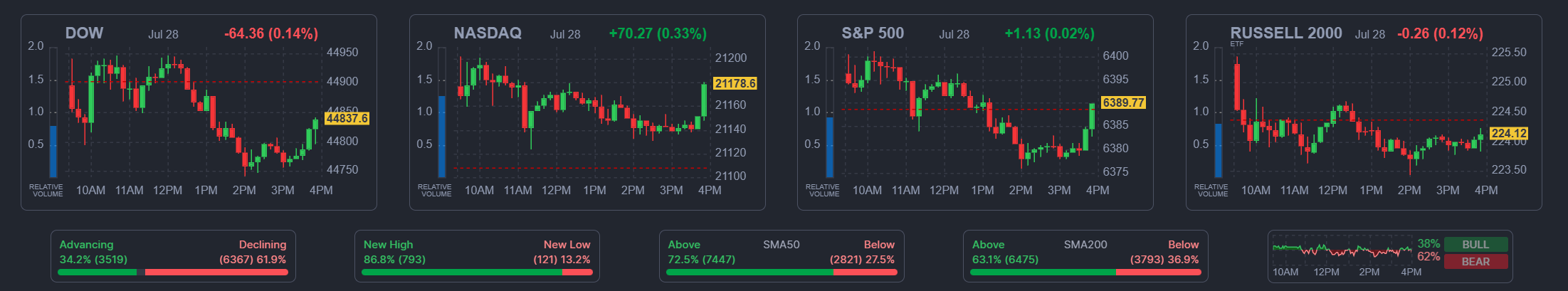 - 다우존스 산업평균지수: 44,837.56 (-64.36p, -0.14%)