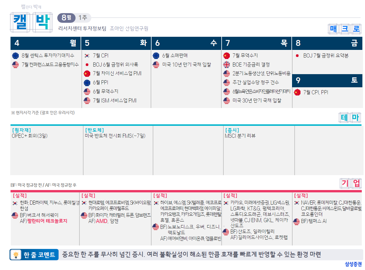 - 8월 8일(금): 파월 의장 잭슨홀 심포지엄 관련 사전 브리핑