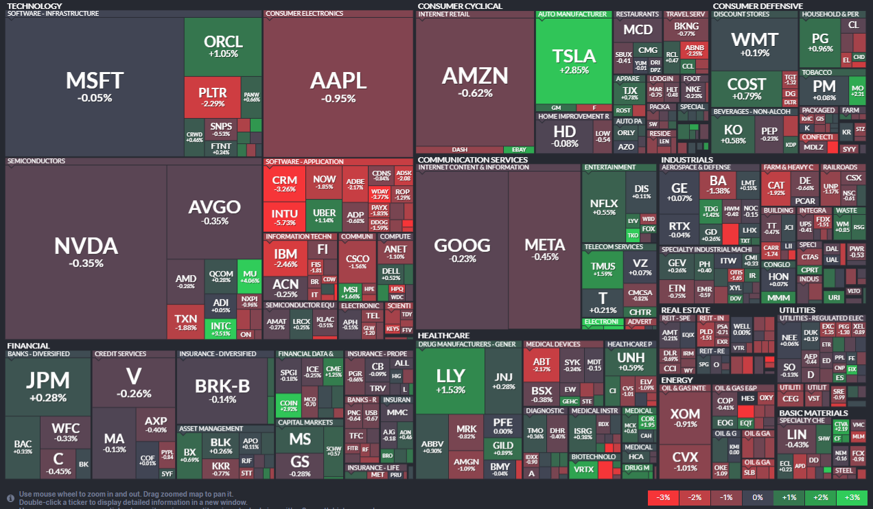 반도체 대형주 엔비디아가 0.35% 소폭 하락했습니다. AI 칩 수요 기대에도 불구하고, 광범위한 테크 섹터 약세가 반영되었습니다.