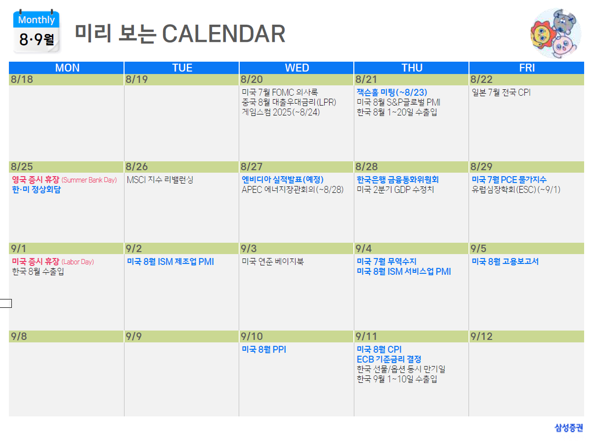 - ⭐ 파월 연준 의장 잭슨홀 기조연설 (오전 10시)