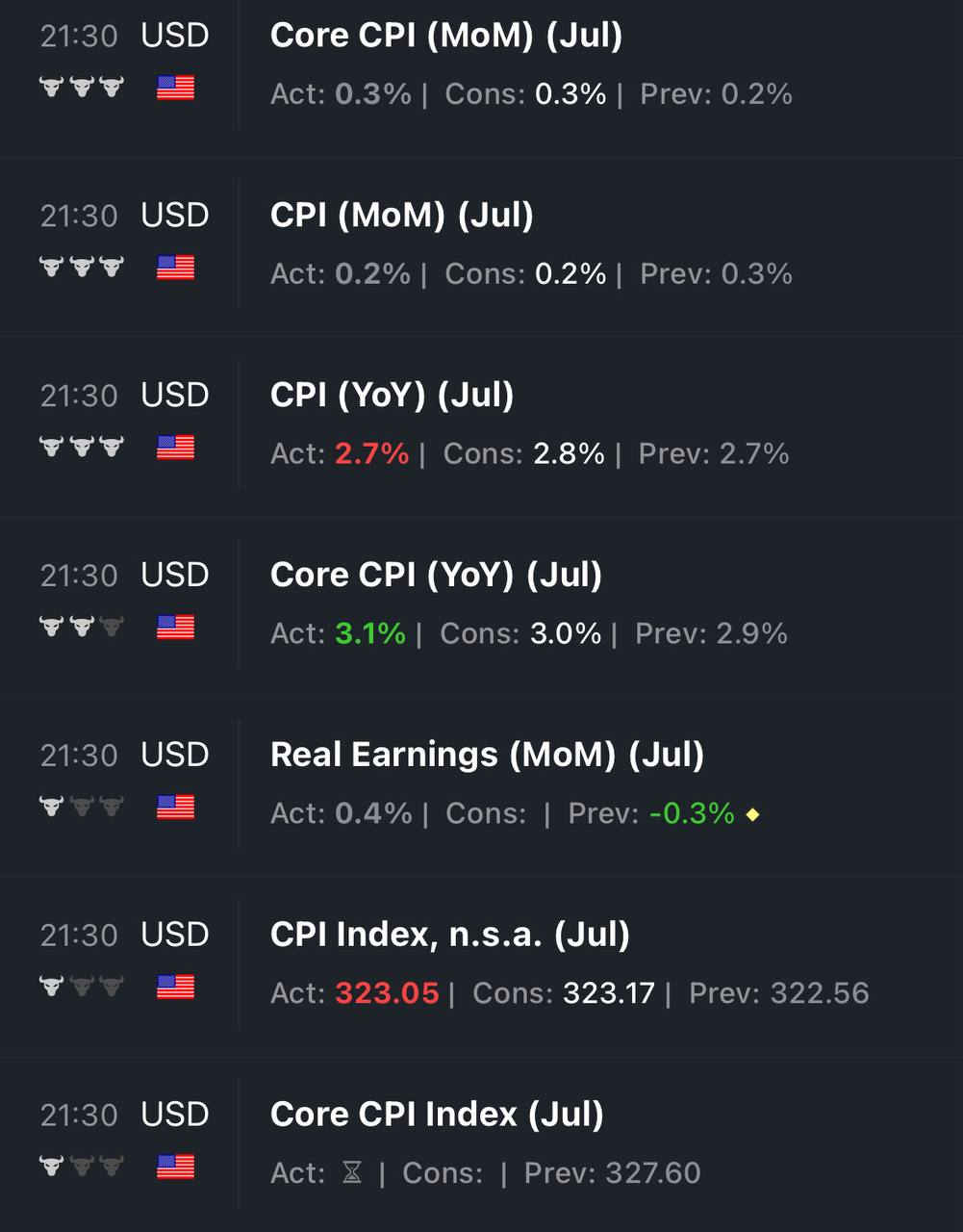 개념: CPI, 미국 7월 소비자물가지수(CPI) 발표가 시장 예상에 부합하며 연준의 9월 금리인하 가능성을 크게 높임
