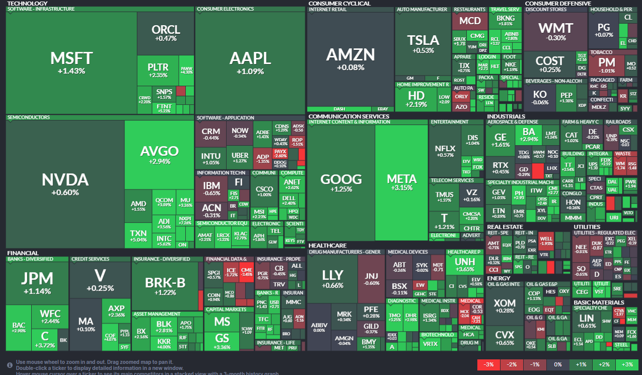 - S&P 500: 6,445.76 (+72.31p, +1.13%) 사상 최고치