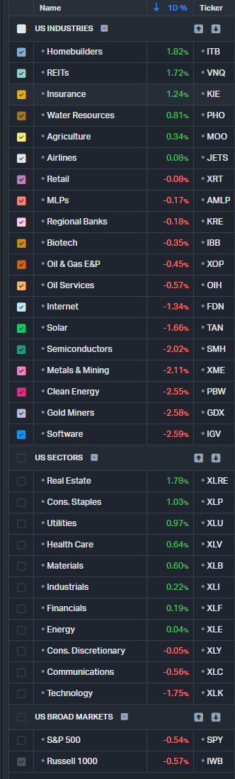 특별한 이슈는 없었음. 그냥 시장이 밀고 싶은데 밀 명분을 [금리인하 기대감 악화 + 샘알트먼의 버블 발언 + 파월의 매파적인 기자회견 우려]라고 잡았을 뿐. 장전 섹터 로테이션 및 일부 기술주의 반등으로 중립적이던 시장은 한국 시간 11시 무렵 팔란티어가 -7%로 떨어지는 등 그간 상승 폭 컸던 테마주중심으로 급격하게 매물이 출회하는 모습을 보면서 로테이션은 맞아 보이지만 시장이 발작하는 상황에서 굳이 소나기를 같이 맞을 필욘 없을 것 같다고 판단해서 헬스케어 전량 매도.
