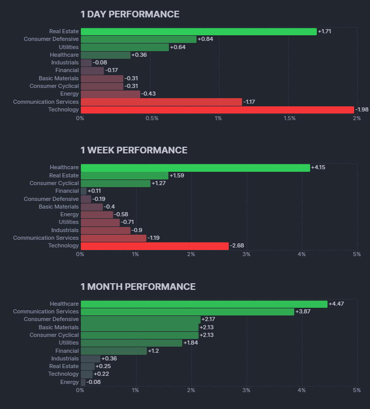 - VIX: 15.19 (+1.33%) - 기술주 하락으로 불안감 증가